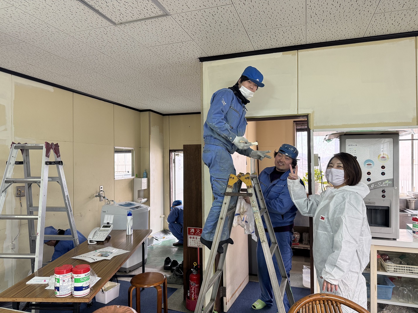 そんなこんなで、社長も一緒になって手伝い、6人がかりで一気に塗り上げました。