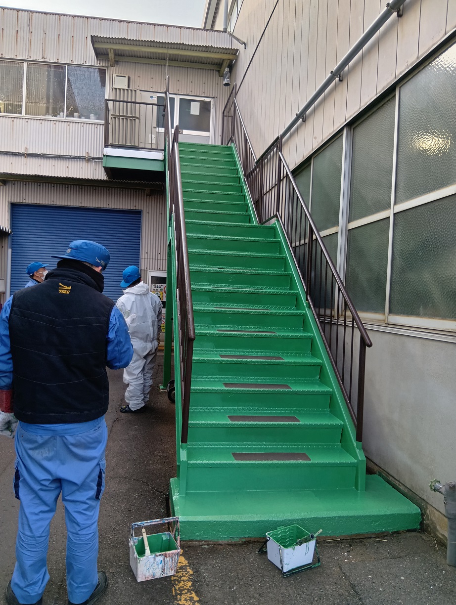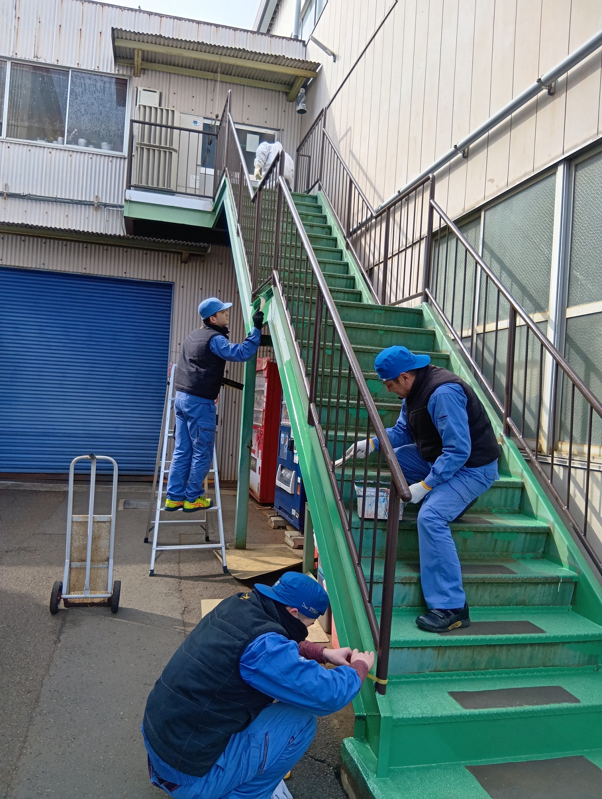 ついでといってはなんですが、食堂に上がる外階段もこの際塗り直しです。