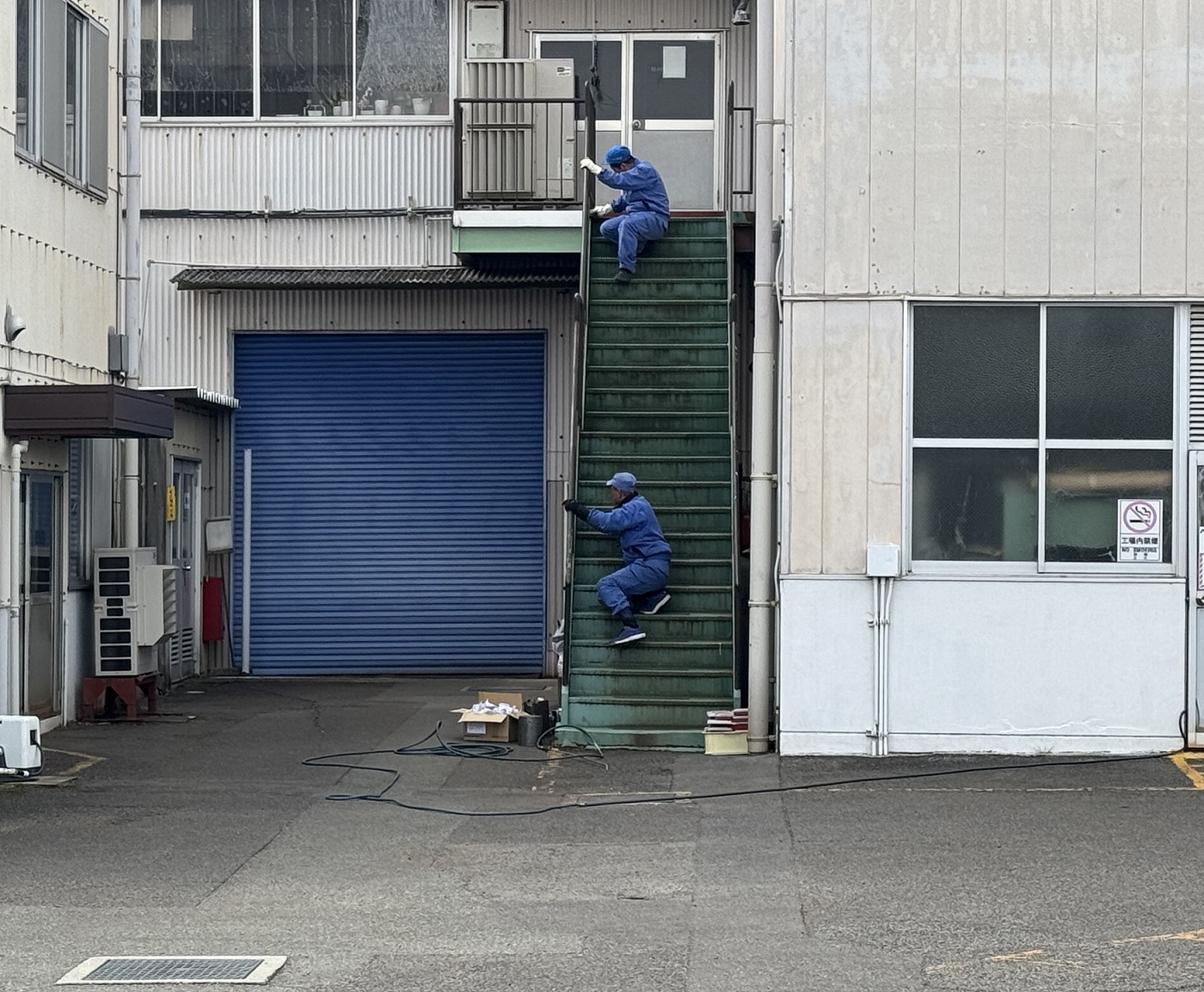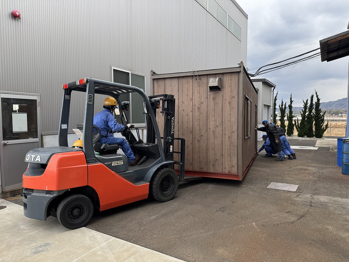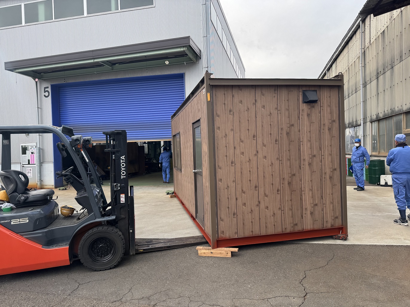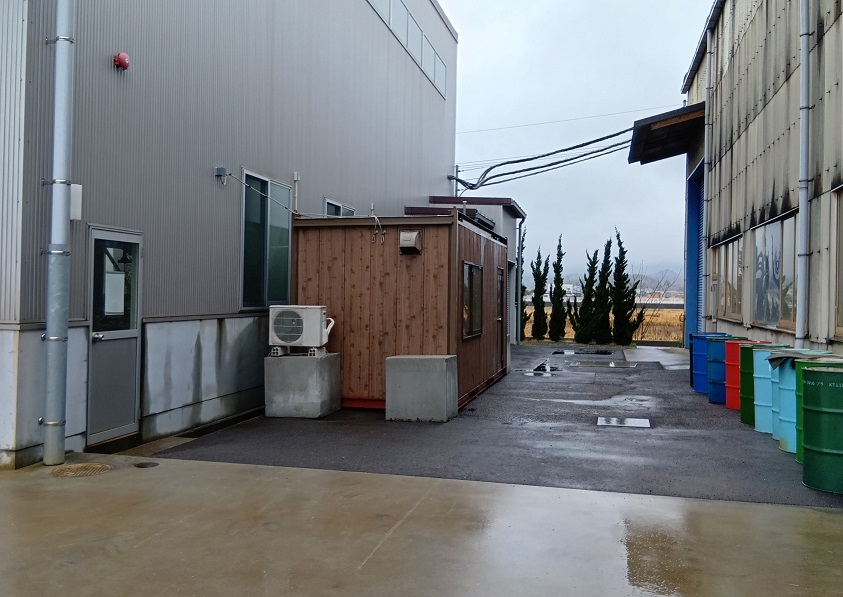 工場内は対応マスク着用必須となることから、プレハブ小屋を製缶工場外に移設する対応を取りました。