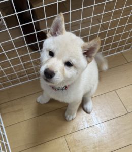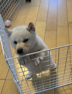 珍しい?白い柴犬にすっかりひとめぼれ。三男と四男も抱っこしたら一緒に魅了され、連れて帰ってきました。