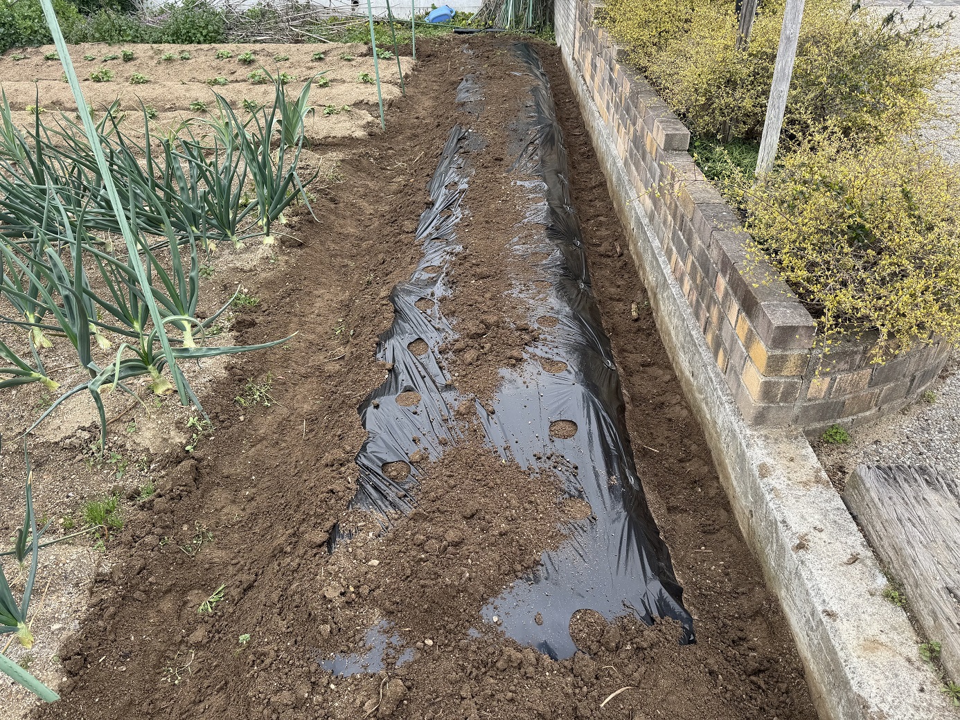 YouTube情報で20℃を超えるとジャガイモの芽がマルチの中で焼けてしまうとのこと。