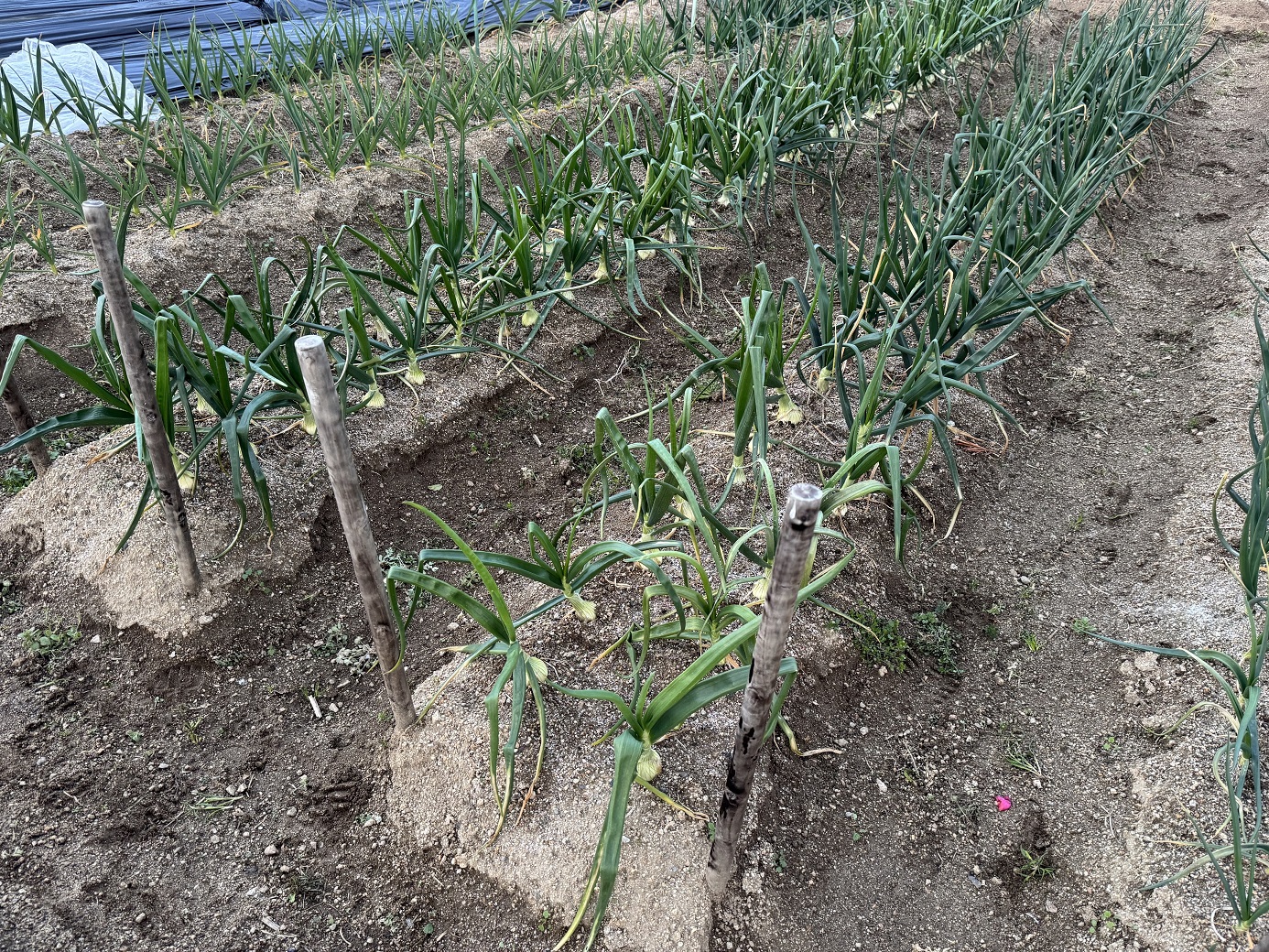 現在着々と育っている玉ねぎとニンニクを収穫した後は、トマトやきゅうりにナスと夏野菜を植えますよ。