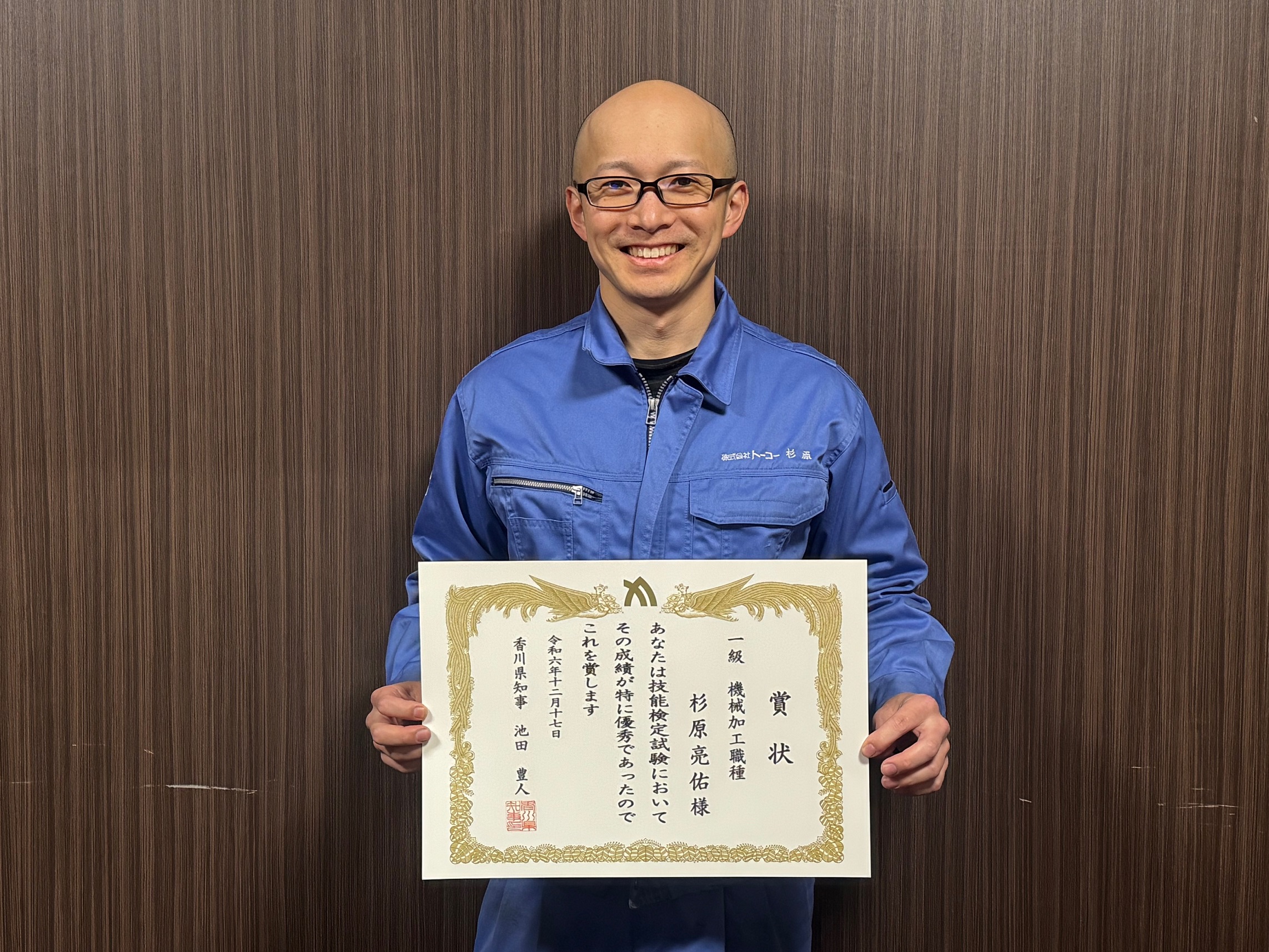今回私が得た1級普通旋盤ですが、実はトーコーにはもう一人県知事賞を受けた社員がいます。