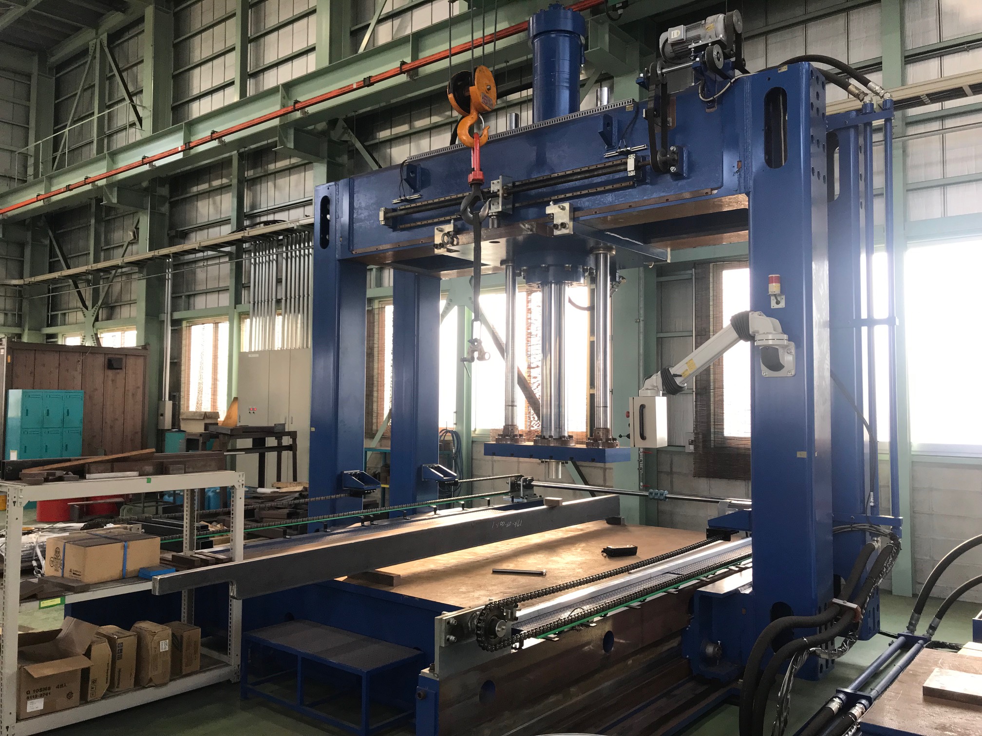 門型で長尺対応もできるサイズに。ストロークの長いものも余裕ですし、クレーンが近くにあるので作業性も格段に上がります。
